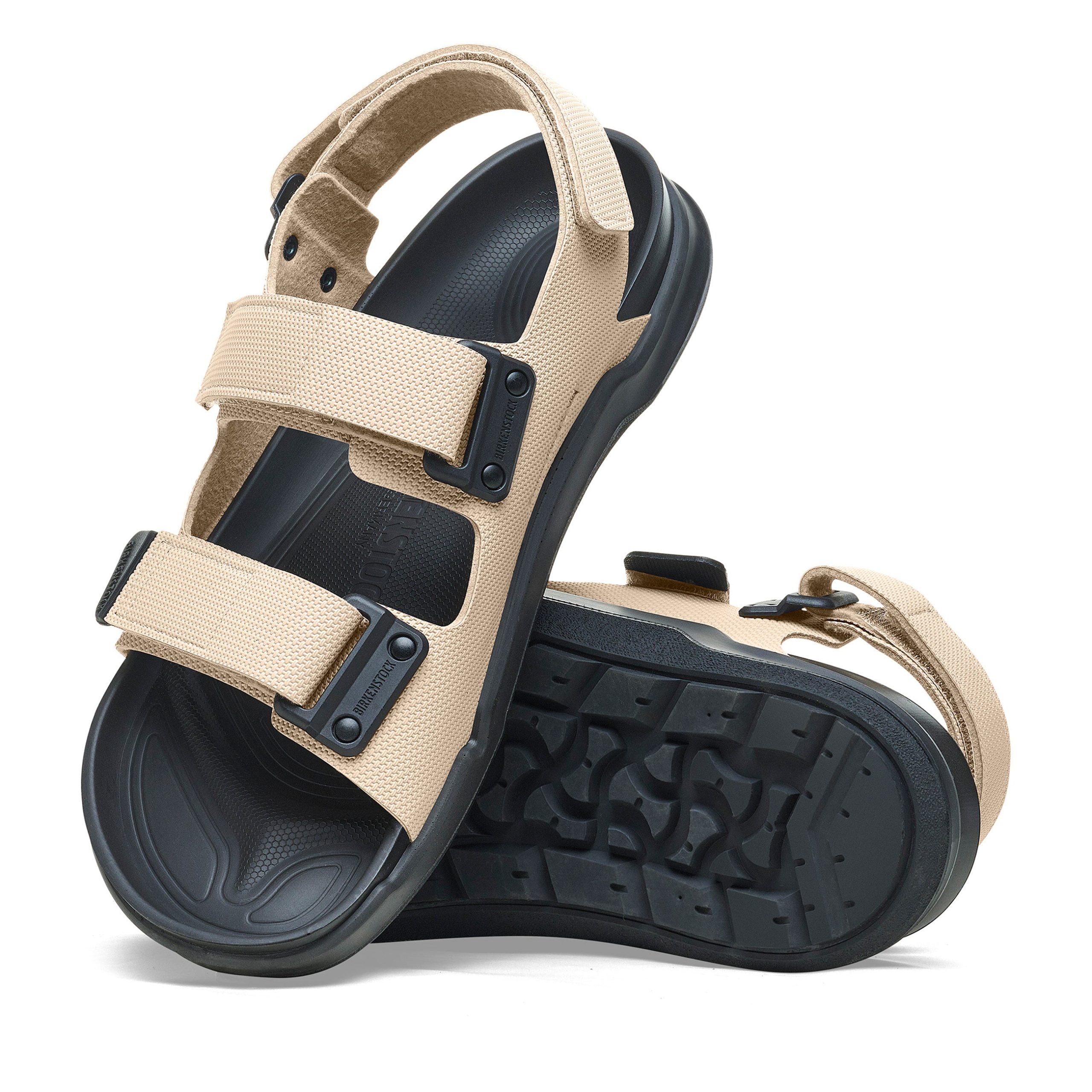 A variation on the classic Milano. The Tatacoa is perfect for anyone out on their feet all day. The pin buckles have been replaced by hook-and-loop fasteners and an PU/TPU outsole added for increased traction and durability. The Adventure Cross Country version is designed for Birkenstock fans who are active and looking for some extra grip to their sandals. The Adventure Cross Element goes a step further by making the style water-ready. so whether you’re trekking over rocks or through rivers. your feet will always be comfortable and supported.